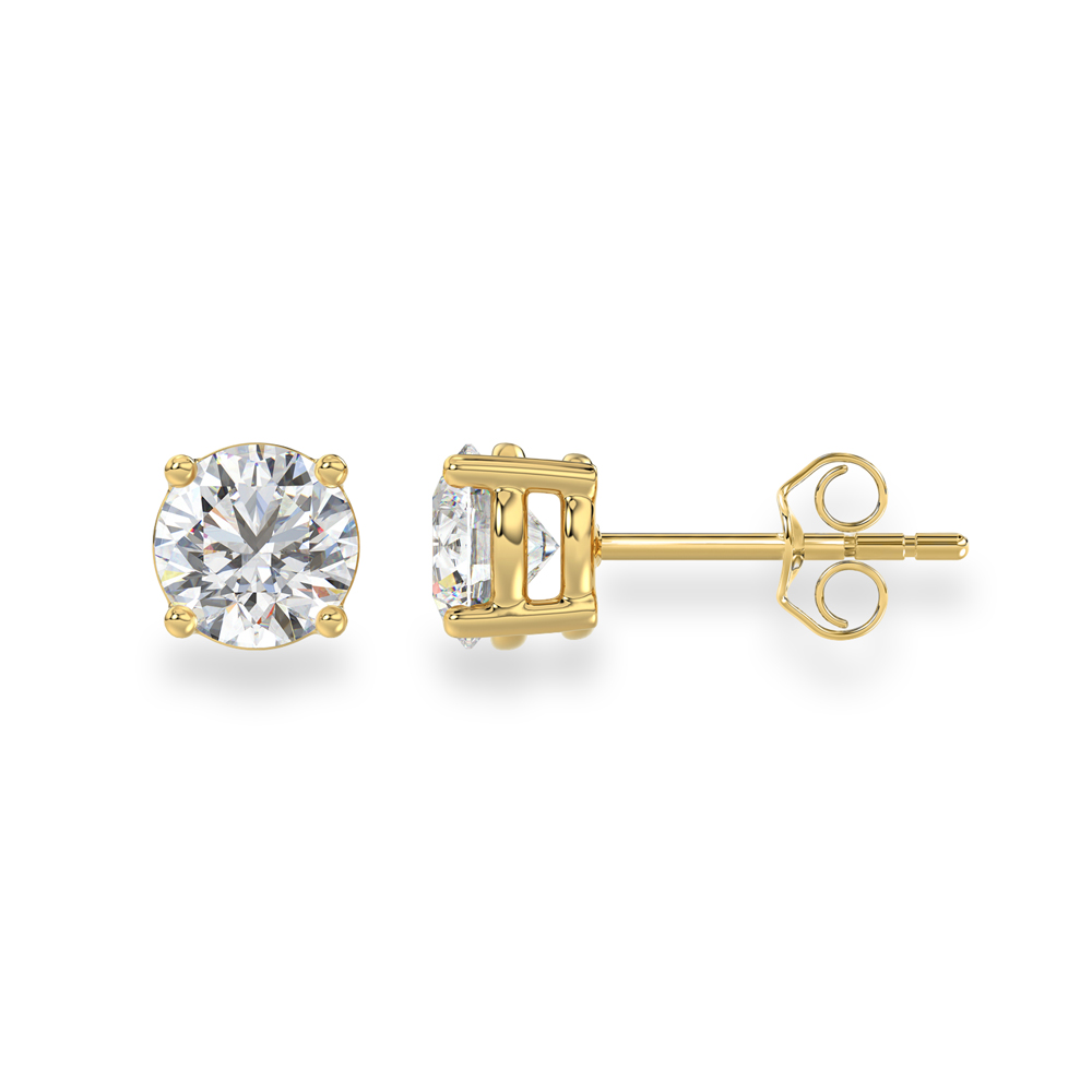 Pair of classic stud earrings, featuring lab-grown brilliant cut diamonds set in 10k yellow gold. Straight posts and butterfly backs.