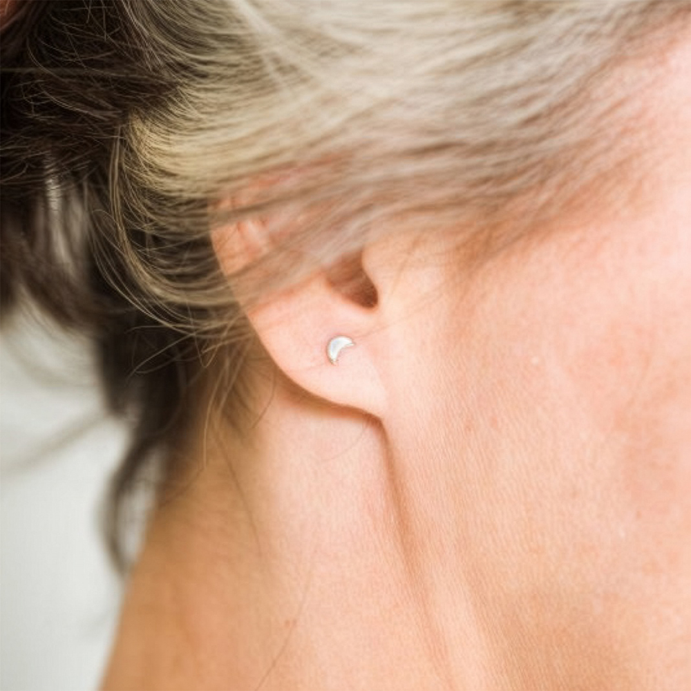 Illuminate your style with these crescent moon studs, crafted in 10k gold for a subtle and celestial glow. Straight posts with butterfly backings. Available in your choice of yellow or rose gold.
