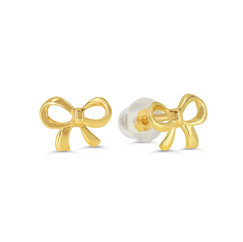 BellaBaby! 14k yellow gold ribbon stud earrings, with threaded posts and comfortable silicone screwbackings.