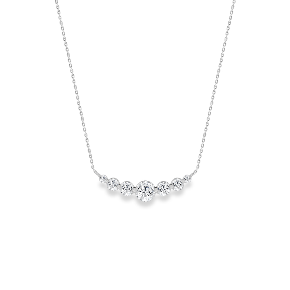 High-quality sterling silver and lab-grown brilliant cut diamond necklace, featuring graduating sizes of diamonds fixed at the centre of a matching chain.
