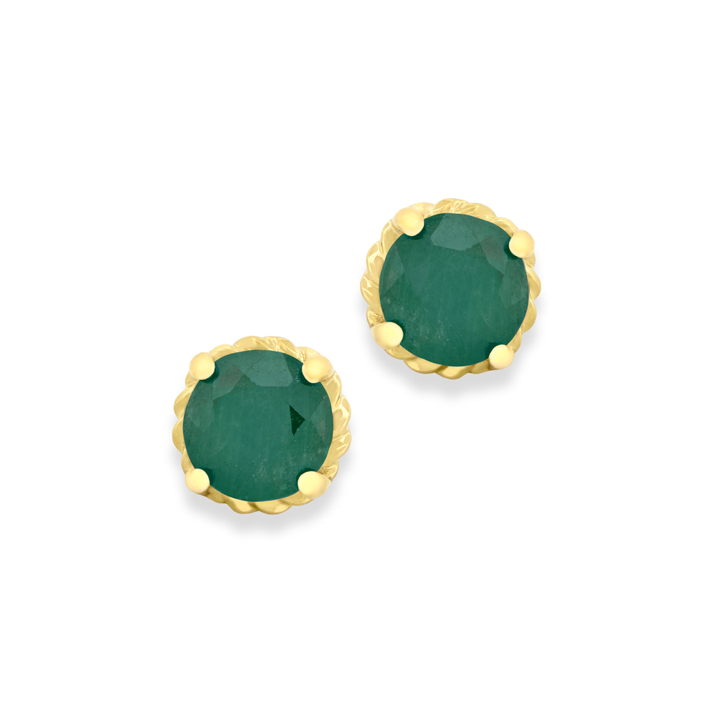 Crafted in sterling silver and 10k yellow gold, these simple stud earrings are sure to shine. Available in your choice of natural emerald or ruby gemstones! Straight posts with butterfly backings.