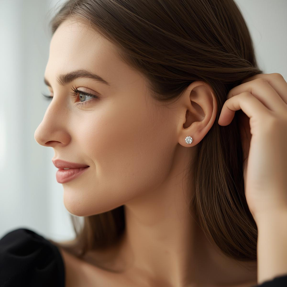 Timeless, natural diamond stud earrings in a variety of carat total weights, set in your choice of 14k yellow or 14k white gold. Straight threaded posts with secure screw-on backings.