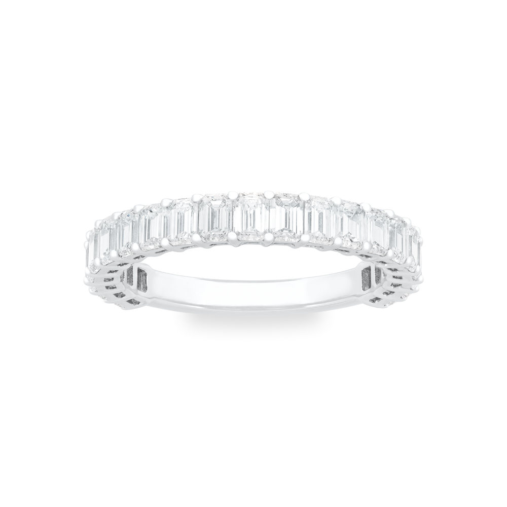 Crafted in 14k white gold, this stunning band features a sleek row of lab-grown emerald cut diamonds in shared claw settings. Pair it with your engagement ring, or let it sparkle all on its own… There's no wrong way to wear a ring that’s this fabulous. In-Stock Ring Size 6.5