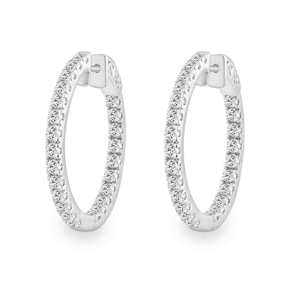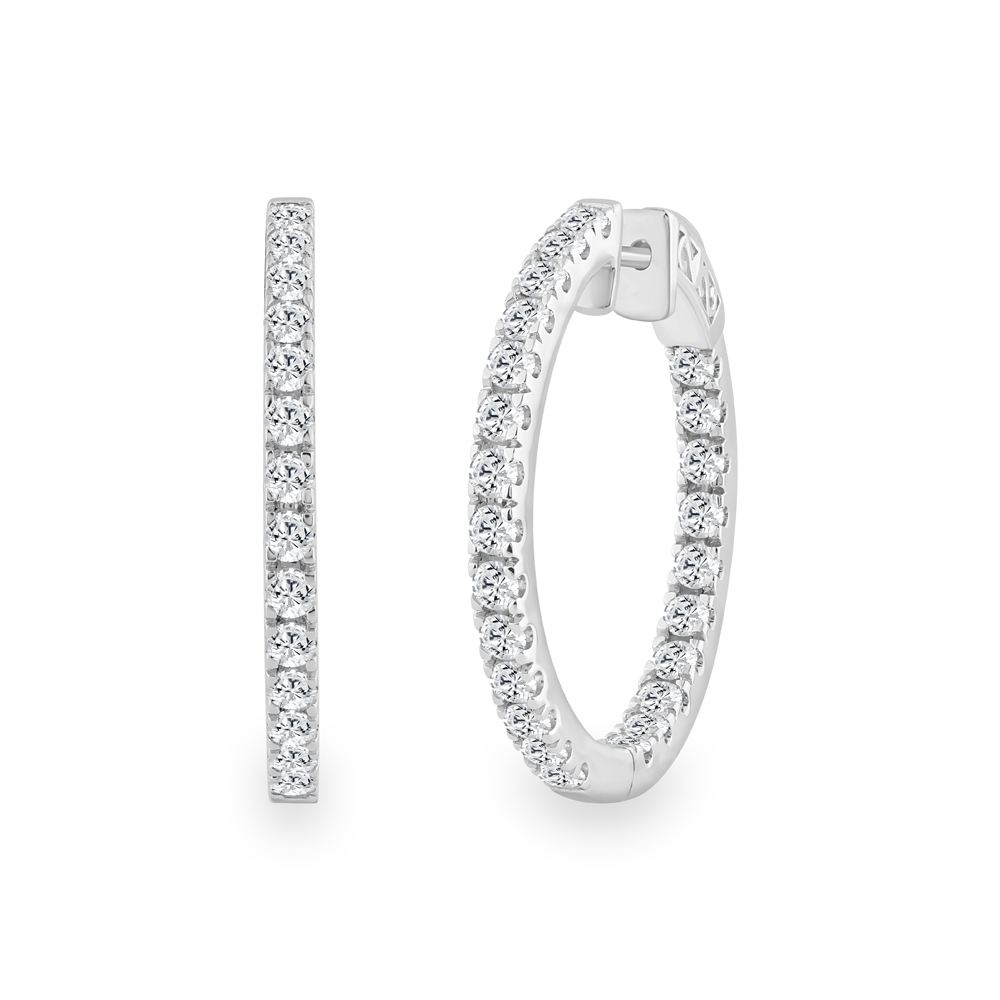Perfect for everyday wear, these stunning lab-grown diamond hoop earrings are set in sterling silver. They feature front-and-back diamond accents and a secure locking closure with a straight post.