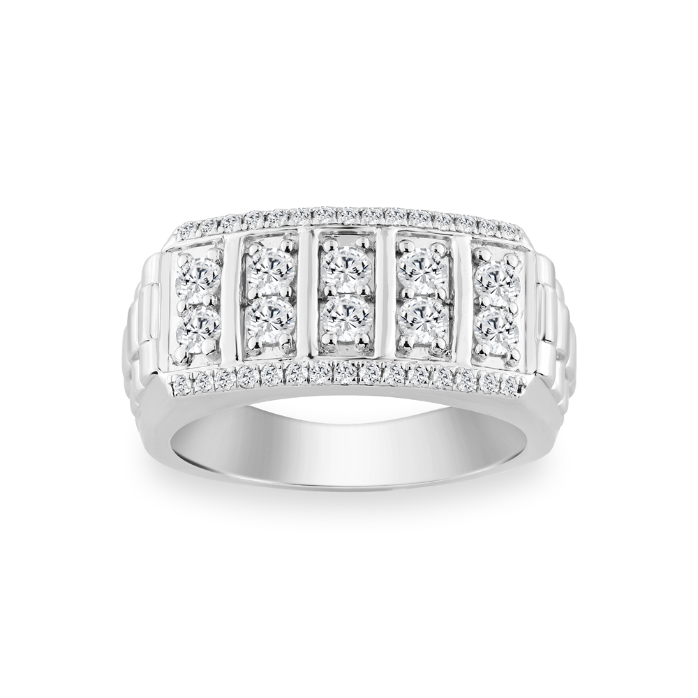 A unisex sterling silver statement ring, set with shimmering lab-grown brilliant cut diamonds. In-Stock Ring Size 10
