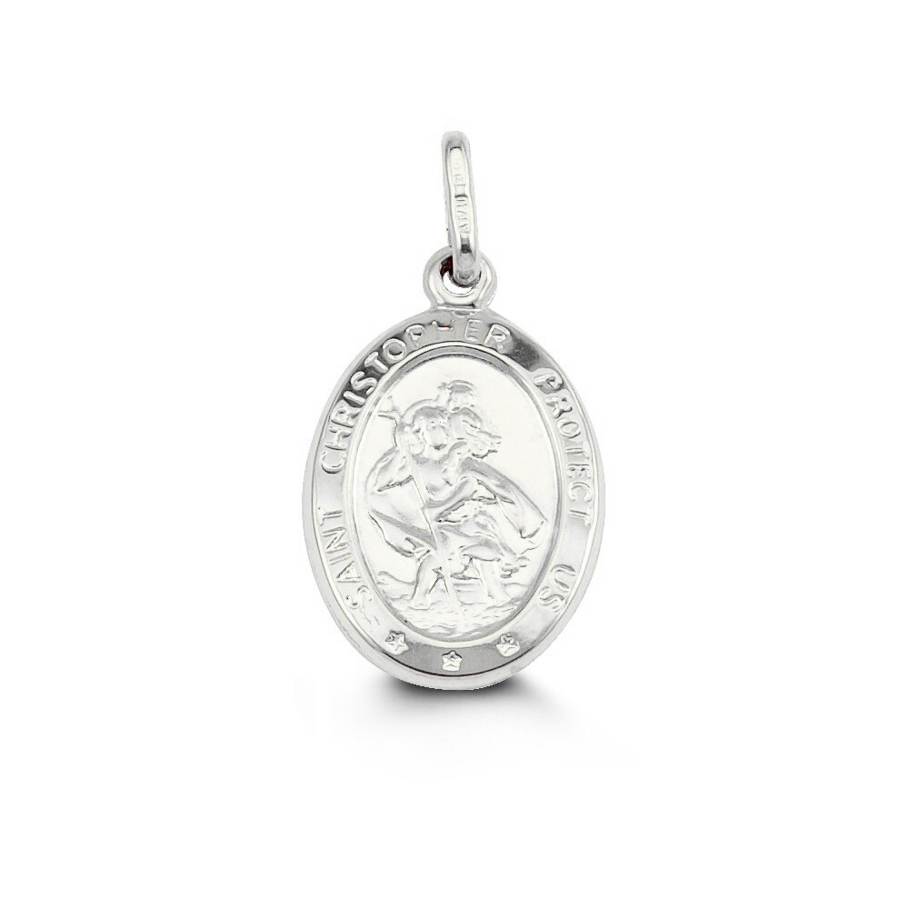Crafted in 10k gold, this St Christopher charm symbolizes safe travels and good fortune. Available in your choice of 10k white or yellow gold.